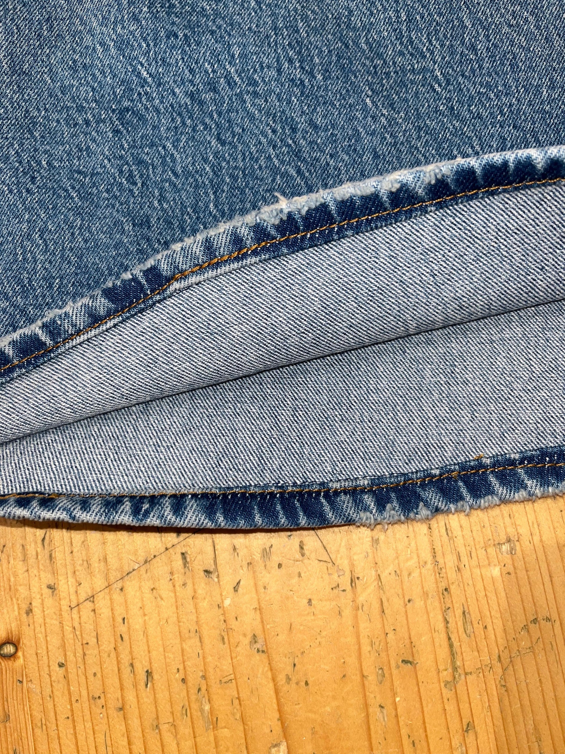 We shorten your jeans or trousers while keeping the original hem, so the natural fading, colour, and finish remain exactly as they are. The result is a seamless alteration that looks like it came straight from the brand.